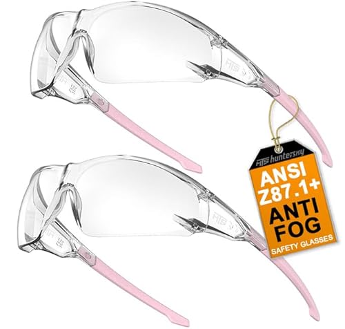 HTS HUNTERSKY S239 2 pack Protective Clear pink small Safety Glasses women youth protecting eyes from wind dust proof bike riding cycling running lab chemistry goggles