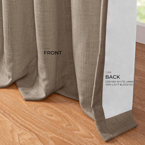 • 【100% Blackout Linen Curtains】These elegant textured linen look curtains have white lining on backing, definitely can block out 100% sunlight and and work well in thermal insulating and noise reducing. Providing complete darkness and privacy in a room, which you can enjoy your sweet sleeping anytime. Also Best choice for night shifter and people sentitve to light.