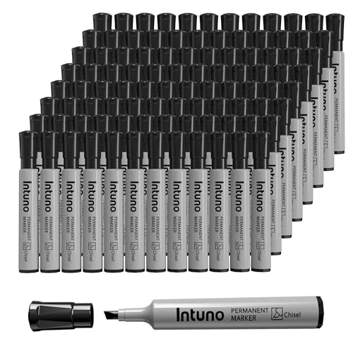 INTUNO Permanent Markers, 96 Count Black, Chisel tip, Oil-Based Permanent Markers, Waterproof and Fade-Resistant, for Paper, Wood, Metal, Glass and More