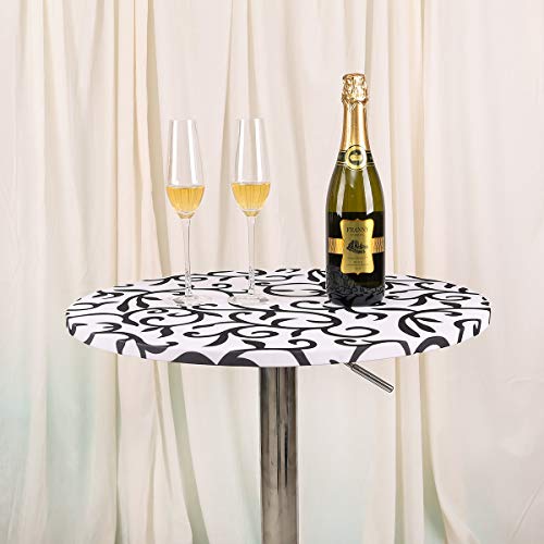 JISEN Cocktail Spandex Round Tablecloth Fitted Stretchable Table Cap 24 Inch White with Black1