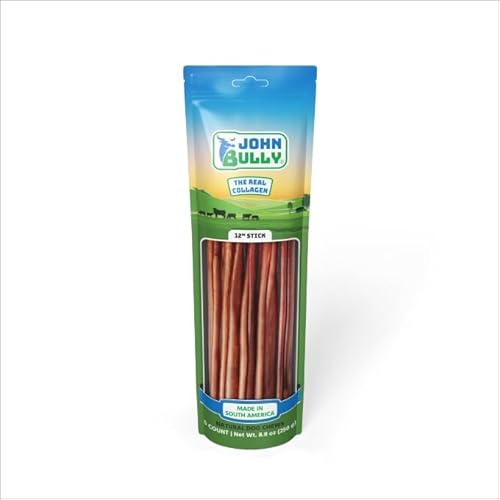 john bully Collagen Stick 12″ 5PK, The Best Option for Your Dog, 100% Natural, Rich in Protein, Highly Digestible, Gluten Free,Premium Grade Quality,Odor Free The Real Collagen