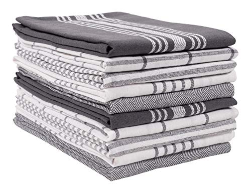 KAF Home Soho Kitchen Dish Towel Set of 10 | 18 x 28 Inch Tea Towels | Soft and Absorbent Mixed Set of Flat Towels (Charcoal)