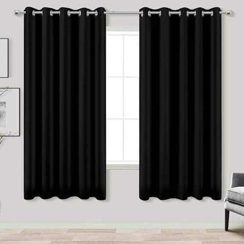 KOUFALL Black Curtains for Bedroom 63 Inch Length x 72 Inches Wide,Room Darkening Black Out Curtain 72×63 Inches Long
