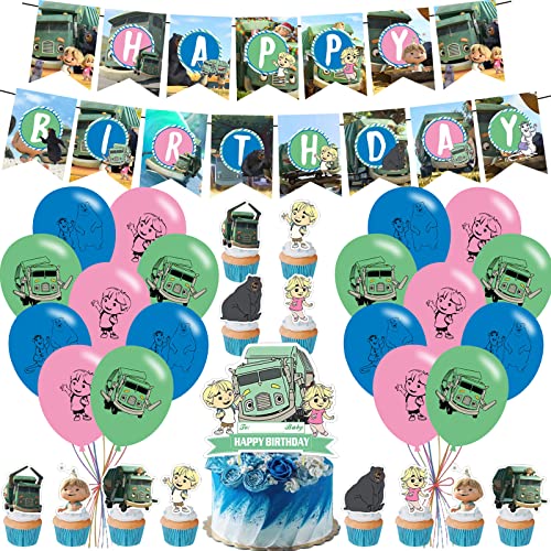 La Babite Trash Truck Party Decorations,Birthday Party Supplies For Trash Truck Includes Banner – Cake Topper – 12 Cupcake Toppers – 18 Balloons