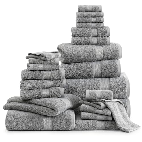 Lane Linen 100% Cotton 24 Pc Bathroom Towel Set – Ring Spun, Quick Dry, Soft & Absorbent – 2 Bath Sheets, 4 Fingertip Towels, 4 Bath, 6 Hand Towels, 8 Washcloths – Hotel Quality Towel Set – Space Grey