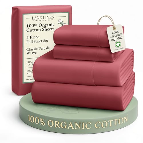 LANE LINEN 100% Organic Cotton Bed Sheets Full Size, Fully Elasticized Sustainably Produced Soft & Comfy, Machine Washable Naturally Cooling Full Sheet Deep Pocket Bedding – Mineral Red