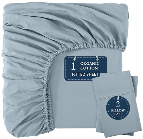 - Naturally Pure Comfort: Immerse in tranquility with our 100% organic cotton Queen Fitted Sheet only (60″ W x 80″ L + 15″ deep pocket) and 2 Standard Pillowcases (20″ x 30″). Crafted for a naturally pure and delightful sleep experience
