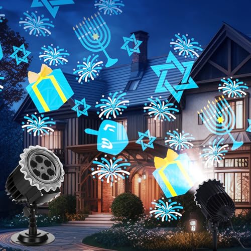 Lingvee Hanukkah Projector Light with 1 Film Slides Holiday LED Projector Lights Outdoor Reflectors Waterproof Landscape Decorative Rotation Lighting Movement Projection Lamp for Party(Menorah)