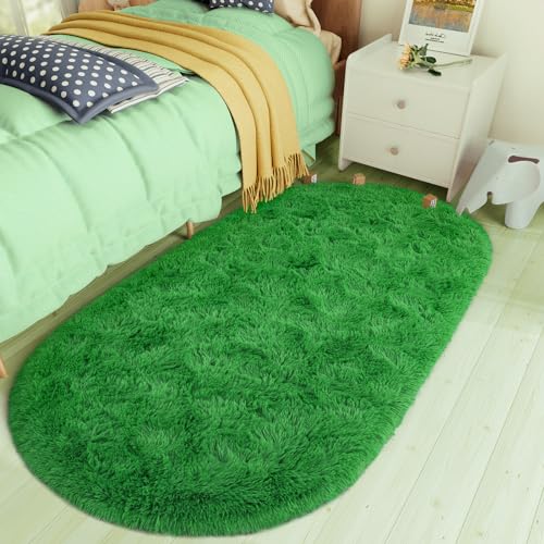 LOCHAS Fluffy Bedroom Rug 2.6′ x 5.3′, Shaggy Area Rug for Bedroom Bedside, Soft Oval Throw Rugs Carpet for Living Room Kids Girls Home Decor