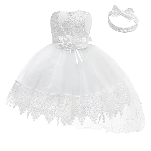 LZH Baby Girl White Dress, Birthday Dress for 1 Year Old Girl Baby Girl Party Dress First Baptism Elegant Party Dress Up