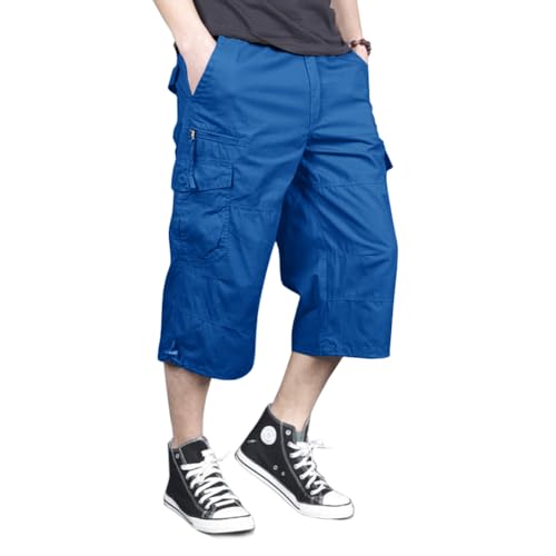 MAGNIVIT Mens Capri Long Twill Cargo Shorts Below Knee 3/4 Cargo Shorts Cotton Relaxed Fit Casual Multi-Pocket ColouredBlue 33