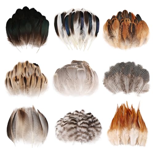 MAOFENG 270pcs 9 Styles Natural Bulk Feathers Assorted Mixed Feathers for DIY Crafts Dream Catcher Wedding Hair Hats Decoration, Guinea Fowl Feathers