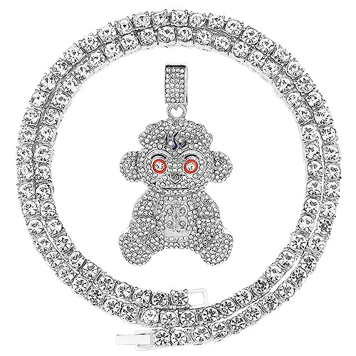 Mens Hip Hop Iced Out Chain Necklaces Silver Gold Monkey | Bear | Lion Pendant Chains Bling Rapper Jewelry (Silver Monkey, Rope Chain)