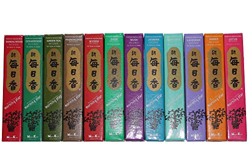 Morning Star Nippon Kodo Incense – 12 Fragrance Assortment (Total 12×50, 600 Sticks) – Sandalwood, Cedarwood, Green Tea, Frankincense, Myrrh, Sage, Musk, Jasmine, Gardenia, Lavender, Amber, Lotus