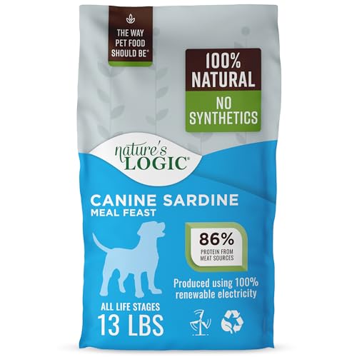 NATURE’S LOGIC Dry Dog Food – 100% Natural – No Synthetics – for All Ages, Sizes, Breeds – Free from Common Allergens, High Protein – Sardine Meal Feast, 13lbs