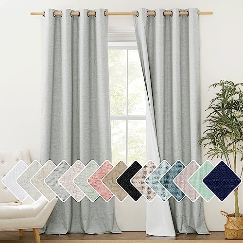 NICETOWN Grey Long Linen Full Shade Panels, 52″ Wide x 95″ Long, Pair of Thermal Insulated & Energy Efficiency Blackout Curtains for Living Room Windows, Lined Silky Performance Window Dressing