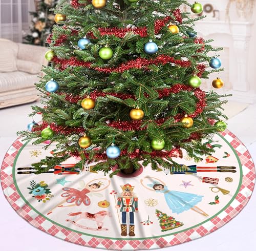 Nutcracker Tree Skirt 36 Inch, Pink Nutcracker Christmas Decor, Winter Holiday Tree Mat Decoration for Xmas Party Ornaments Holiday Accessory Decorative