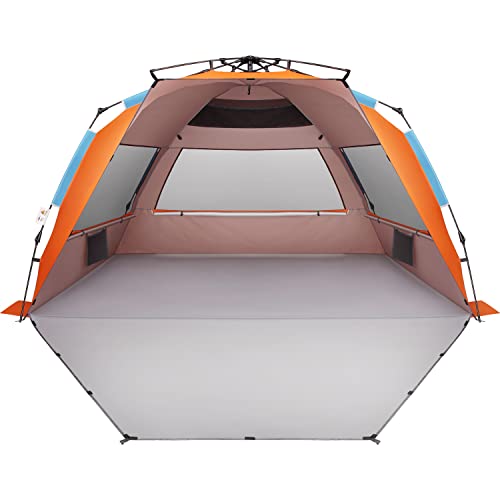 Oileus XX-Large Beach Tent Sun Shelter for 5-6 Person Portable Sun Shade Instant Pop Up Tent for Beach with Carrying Bag, Stakes, 6 Sand Pockets, Anti UV for Fishing Hiking Camping, Waterproof