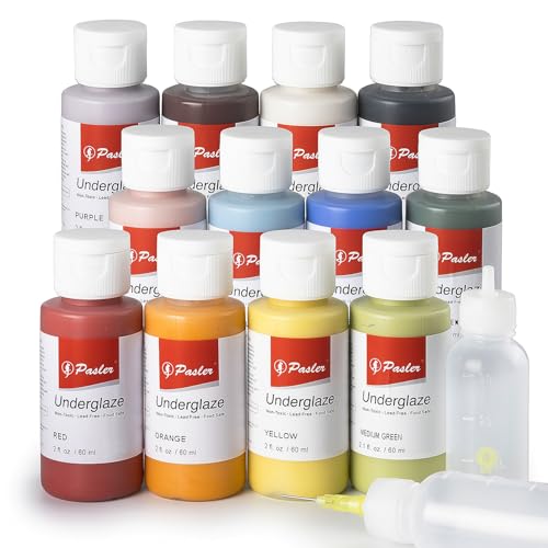 Pasler Underglaze Set – 2 fl oz/60 ml, Concentrated Opaque Liquid Underglaze for pottery bisque, Set of 12 Colors