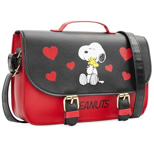 Peanuts Snoopy Crossbody Bag Girls Purse for Kids Teens Women Fashion Shoulder Bag (Red/Black, 9.84×6.89×2.77inch)