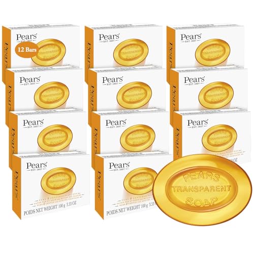 Pears Soap, Pure & Gentle with Natural Oils, 12-Pack – Transparent Amber Glycerin Soap for Pampered, Glowing Skin, 3.53 Oz Ea