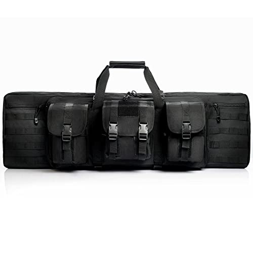 - UNIQUE DESIGN: Molle system designed to for attaching additional tactical pouches and gears. There are fastener straps, stock sleeve and you can open the gun bag up and lay it out flat. Waterproof, dustproof and well-padded to protect your gun during transport.