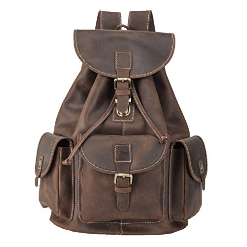 Polare Vintage Full Grain Leather Rucksack Backpack Casual Travel Satchel Bag Daypack For Men Women Dark Brown