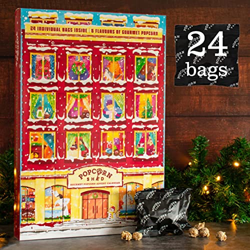 Popcorn Shed Gourmet Popcorn Christmas Advent Calendar 2025, 24 Days of Popcorn – 6 Luxury Flavors, All Natural and Vegetarian Foodie Gift, Non-Chocolate Advent Calendar, British Candy