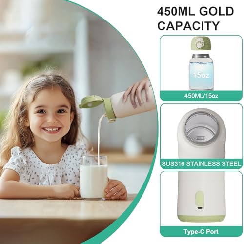 Portable Bottle Warmer for Travel, 15oz Capacity Portable Milk Warmer for Baby, Formula, Breast Milk & Water, On The Go Bottle Warmer with Long Battery Life, Even Heating, Precise Temperature Control