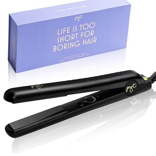 PYT 1.25” Professional Ceramic Hair Straightener – Negative Ion Flat Iron for Frizz-Free Shine, Adjustable Temperature, Dual Voltage, Lightweight Design, Straightens and Curls