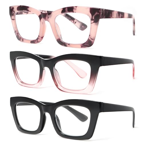 REAVEE Oprah Style Reading Glasses for Women Blue Light Blocking Computer Fashion Readers with Spring Hinge and Glasses pouch (Black/Pink/Tortoise +1.5)