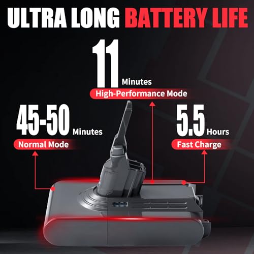 - 【 Ultra 7000mAh Capacity 】 RhodeBatt 7000mAh battery for dyson V8 is equipped with upgraded premium battery chip. Enjoy longer runtime and stronger suction compared to standard Dyson V8 batteries, providing extended cleaning power without frequent recharging.