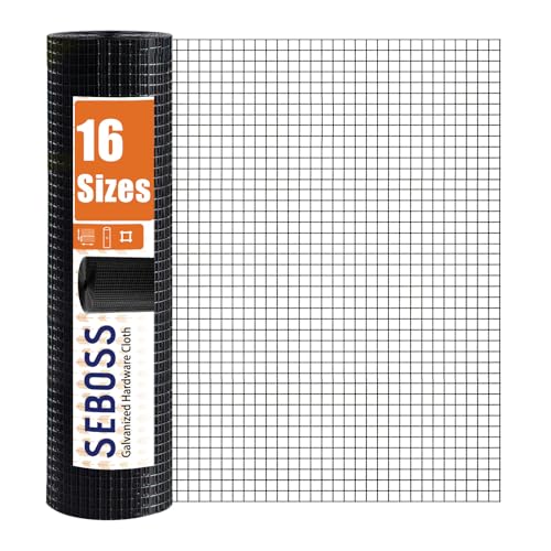 SEBOSS Black Hardware Cloth 1/2 inch 36 x 100 Ft 19-Gauge, Vinyl Coated Wire Mesh Roll, Chicken Wire Mesh, Chicken Wire Fencing, Wire Fence Roll, Garden Fence, Wire Cloth