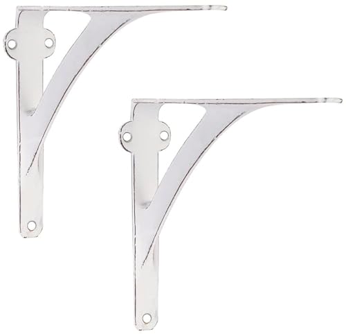 Set of 2 White Shelf Brackets for 8″, 10″, 12″ Shelves – Distressed White Finish – 9.88″ X 7.38″ Heavy Duty Iron L Brackets for Wall Shelves Hardware Included,
