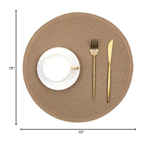 SHACOS Round Braided Placemats Set of 8 Washable 15 inch Round Table Mats Woven Place Mats for Dining Table (Brown, 8)