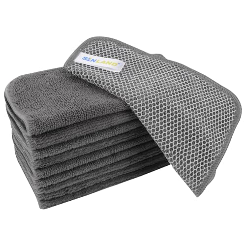 SINLAND Microfiber Dish Cloth for Washing Dishes Dish Washing Rags Best Kitchen Washcloth Cleaning Cloths Wash Cloths with Poly Scour Side 7.87Inchx7.87Inch 10 Pack Grey