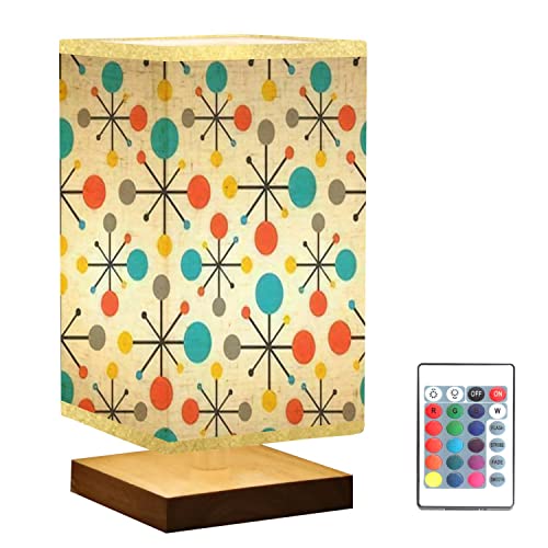 Square Bedside Table Lamp Mid Century Fifties Modern Atomic Retro Colors Seamless Wooden Base Fabric Shade Dimmable Nightstand Desk Lamp Living Room