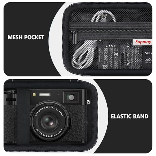 Supmay Hard Travel Case for Fujifilm X100VI / X100V Digital Camera, Digital Camera Storage Case With Mesh Pocket for Batteries, SD Card, USB Cable, Black