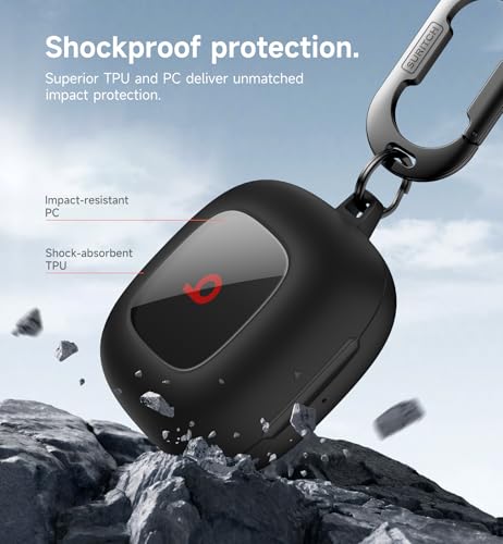 SURITCH Case Compatible with Beats Fit Pro Earbuds, Shock-Absorbing Protective TPU Shell for Beats Fit Pro Charging Case 2021 Earbuds Secure Locking System with Anti-Lost Keychain, Black