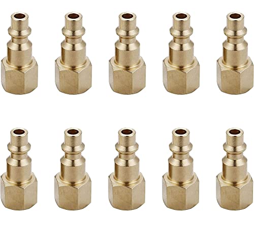 T TANYA HARDWARE Air Hose Fittings And Quick Connect Air Fittings, 1/4 Inch NPT Brass Female Air Coupler Plug (10 Piece) Industrial Type D, Air Compressor Fittings