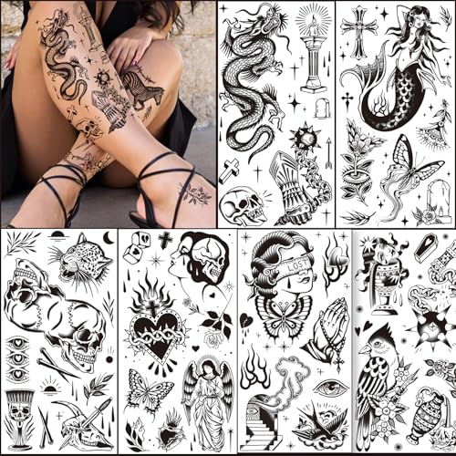 - 【Large American Traditional Black Tattoo Stickers】Tazimi original 12 sheets of super large classic black adult temporary tattoo stickers, old-fashioned traditional tattoo stickers are designed for adults. These retro traditional American elemental tattoos are creatively designed by our artists and are 4.72*9.06 inches in size. These waterproof fake tattoos look very realistic, artistic, eye-catching, and make you shine like a star. Enjoy expressing yourself with these American old tattoos!
