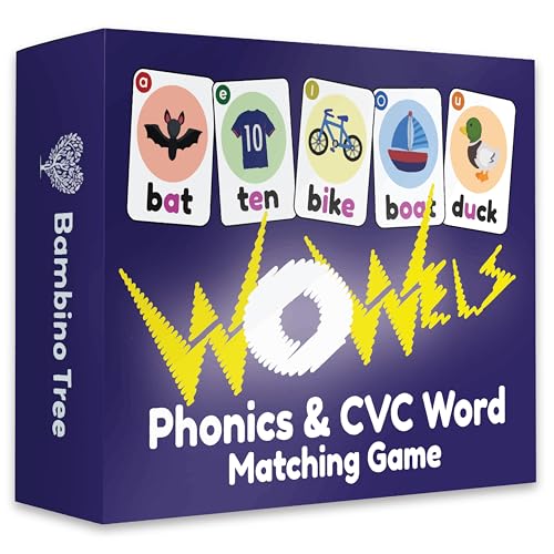THE BAMBINO TREE WOWELs Phonics and Vowel Sounds Card Game – Learn to Read Kindergarten 1st 2nd Grade Learning – Short Vowel CVC Words and Long Vowel Matching Game 2-8 Players
