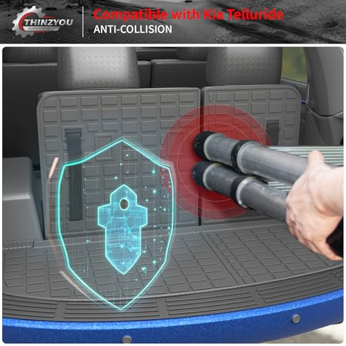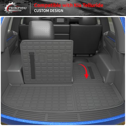 Thinzyou Cargo Mat Compatible with 2020-2025 Kia Telluride Trunk Mat Cargo Liner Trunk Liner TPE All Weather Back Seat Cover Protector 2024 Telluride Accessories (Trunk Mat with Backrest Mat)
