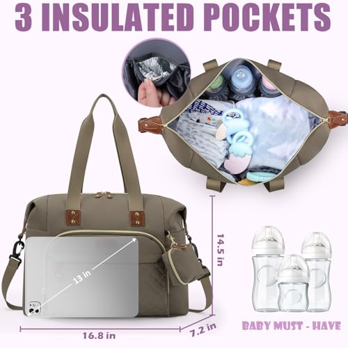Tuwubi Diaper Bag Tote,Baby Diaper Bag with Pacifier Case Large Travel Diaper Tote Caddy for Mom and Dad Multifunction Large Baby Bag – Khaki