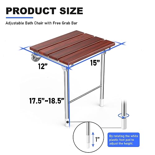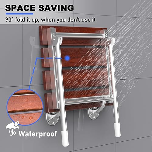 - MODERN RED SANDALWOOD FOLDING SEAT – The seat plate is made of North American red sandalwood, cut and sanded with a whole piece of solid wood and covered with water-repellent paint on the surface. It can better integrate into the decoration design of modern household. It is both simple bathroom assistance for your shower and a decoration