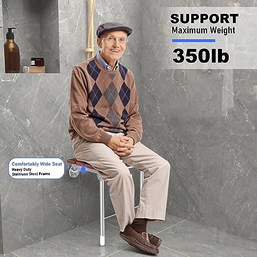 - SPACE SAVING WALL MOUNTED FOLDING SHOWER BENCH – Our shower seat bench can quickly 90° fold for save space when not in use. Because its convenient folding up and wall mount design, ideal for small bathroom or narrow shower stalls without taking up too much space. It brings more warm enjoyment and enjoys comfortable bathing fun