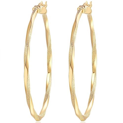 Verniflloga 14K Gold Hoop Earring for Women Earrings Hoops Twisted 14 Karat Gold Earrings Gold Jewelry Lightweight 30mm,40mm (40MM)