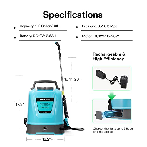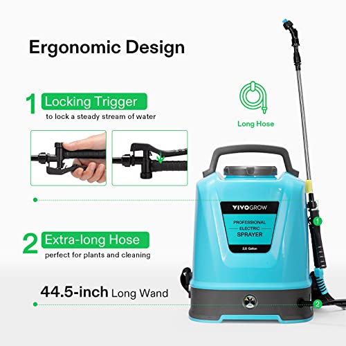 VIVOGROW Backpack Battery Powered Sprayer, 2.6-Gallon/10L Electric Pump Sprayer with Six Nozzles, Adjustable Shoulder Strap and Spray Wand for Garden, Lawn and Other Cleaning, Blue