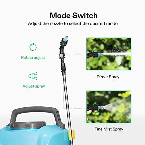 - Rechargeable & High Efficiency: Sprayer is equipped with a 2.6A lithium battery and charger that lasts up to 3 hours on a full charge, significantly reducing labor time, it is 3-4 times more efficient than a hand pump sprayer; Cordless power for easy use and portability
