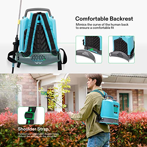 - Ergonomic Design: Comfortable Backrest mimics the curve of the human back to ensure a snug, comfortable fit; Padded adjustable shoulder strap helps reduce the weight on the shoulder; Handle comes with a locking trigger, to lock a steady stream of water, for more convenient use